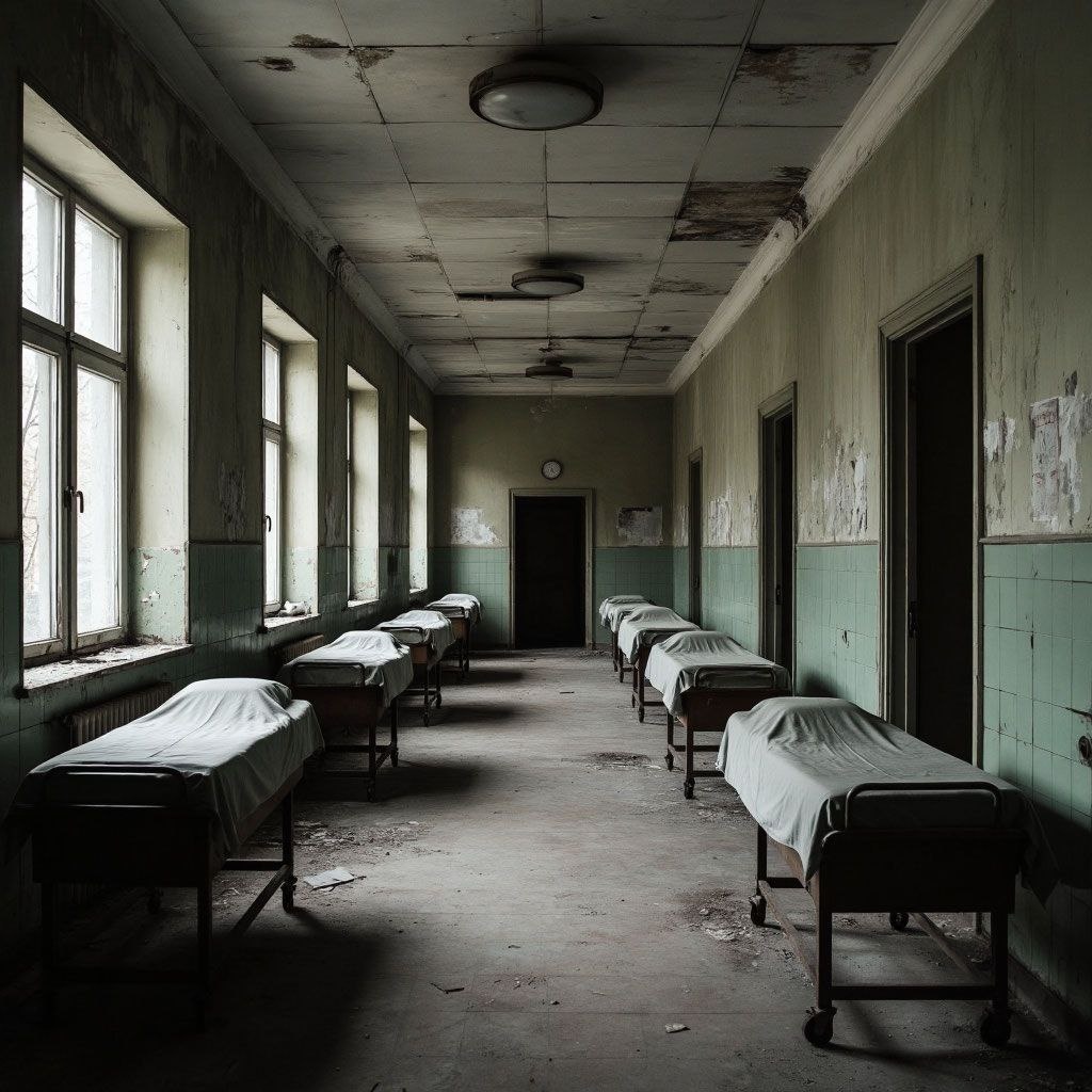 В глуши Чернобыльской зоны, за ржавыми периметрами и зарослями мутировавшего лопуха, стоял морг № 12 — забытый, но не безмолвный. Официально его закрыли в 1987‑м, однако местные патрульные шептались: по ночам в окнах мелькает свет, а из‑под дверей сочится запах — не тления, а чего‑то живого. Я, журналист‑исследователь Артём Ковалёв, прибыл сюда с одной целью: доказать, что слухи — лишь игра радиации с человеческим сознанием. Со мной был проводник — бывший дозиметрист Игорь «Серый» Власов. Он предупредил: — Зайдёшь один. Если через полтора часа не выйдешь — я ухожу. Там… не законы физики правят. Здание притаилось в низине, будто погребённое заживо. Стены покрывала фиолетовая плесень, пульсирующая в полумраке. Дверь со скрипом отворилась, обнажив коридор с облупленными табличками: «Приём», «Секционная», «Хранилище», «Архив». Воздух был густым, словно пропитанным шёпотом. В приёмной на столе лежал журнал. Страницы, пожелтевшие от времени, хранили записи: Последняя запись, сделанная красн