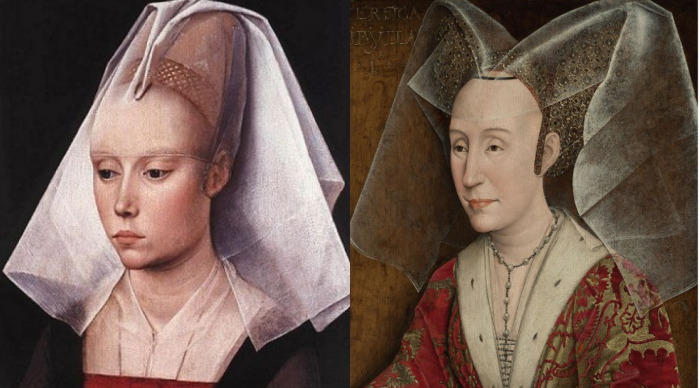 Такой «ансамбль» создавал нужный эффект: лицо как будто вытягивалось вверх, а прическа становилась продолжением головы, подчёркивая социальный статус и принадлежность к модной элите.