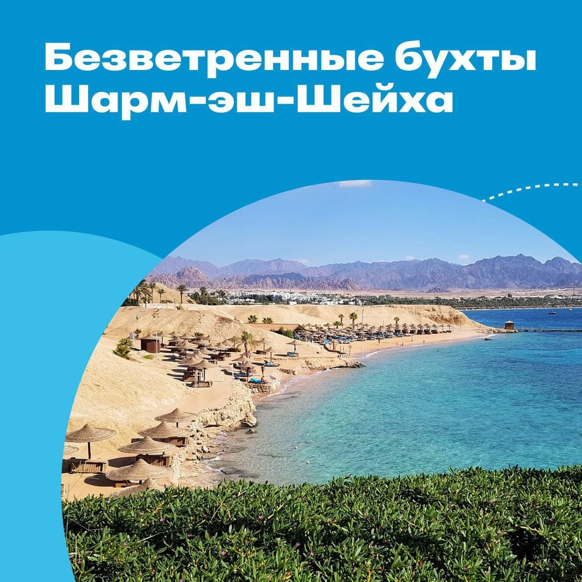 Шарм зимой: поймать солнце и спрятаться от ветра 🌞 Египет — лидер по доступному отдыху зимой и в новогодние праздники. Но у египетской зимы есть своя особенность — это сезон ветров. Хорошая новость: в Шарм-эль-Шейхе есть уютные бухты, защищенные от стихии. Именно здесь ваш отдых будет по-настоящему комфортным. Мы подготовили краткий обзор по 6 лучшим бухтам, где ветра ощущаются меньше всего: 📍 Рас Насрани: популярная бухта с отличными пляжами и условиями для кайтсерфинга и других водных развлечений. 📍 Шарм-эль-Майя: живописная и спокойная бухта с мягким климатом. Идеальный выбор для семей и любителей водных видов спорта. 📍 Наама Бей: самое оживленное сердце курорта с множеством ресторанов, магазинов и спокойным морем. 📍 Шаркс Бей: рай для дайверов и снорклеров! Знаменита коралловыми рифами и кристально чистой водой. 📍 Рас-ум-эль-Сид: для тех, кто ищет уединения и живописные виды. Отсюда удобно отправляться на экскурсии. 📍 Хадаба: тихий и спокойный район, отлично подходит