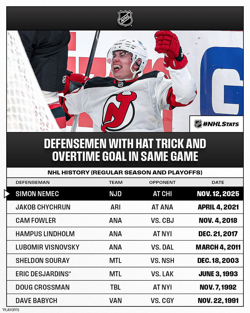 👹 Дьявольски крутое достижение Хет-трик для защитника — вещь вообще редкая, а чтобы ещё и в овертайме забросить, то таких случаев и вовсе немного. Немец стал самым молодым защитником в истории НХЛ, кому удалось это сделать. @pro_nhl_ru