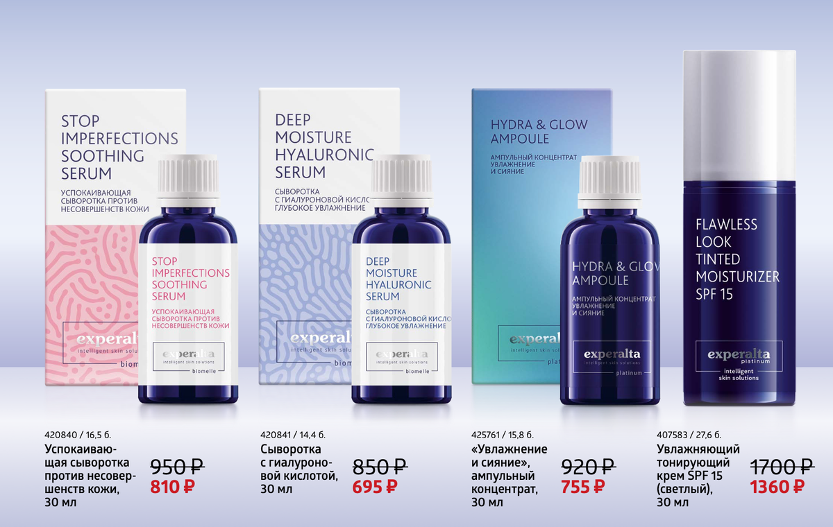 🔥 Идеальная кожа в любом возрасте – ловите скидки на топовые продукты! Лето в разгаре, а значит, кожа требует особой заботы: увлажнения, защиты от солнца, ровного тона и борьбы с несовершенствами. Мы собрали для вас 4 топовых продукта, которые решат самые частые проблемы и подарят коже сияние, упругость и комфорт. ❗ Но спешите! Скидки действуют только до 27 июля, а количество товаров ограничено. 👇 Успейте подарить своей коже лучшее! https://ru.siberianhealth.com/ru/shop/catalog/product/420841/?referral=2550237223 Сыворотка с гиалуроновой кислотой Experalta Biomelle 🌸 После нее кожа как у младенца – мягкая, упругая, без шелушений! Если кожа «пьет» крем, но все равно стянута, эта сыворотка – ваш must-have! 🔹 Гиалуроновая кислота разного молекулярного веса – увлажняет и стимулирует синтез коллагена. 🔹 Пребиотики – восстанавливают защитный барьер. 🔹 Витамин С – сияние + защита от пигментации. 🔹 Идеально перед макияжем – тональник ложится ровнее. https://ru.siberianhealth.com/ru/s