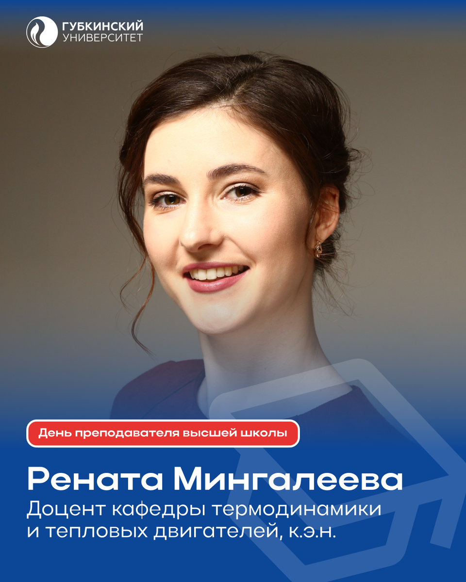 Для Ренаты Мингалеевой преподавание — это возможность открывать новые идеи и делиться ими с будущими специалистами отрасли. Расскажите, как начался Ваш путь в преподавании. Когда Вы поняли, что хотите остаться в университете? Мой путь начался после окончания магистратуры. В 2014 году я завершила обучение по совместной программе с Королевским технологическим институтом (Стокгольм, Швеция). Вместе с моим научным руководителем, профессором кафедры Валерием Владимировичем Бесселем, мы продолжили развивать новое для университета направление, посвящённое вопросам развития мировой энергетики, повышения энергоэффективности и использования возоб
