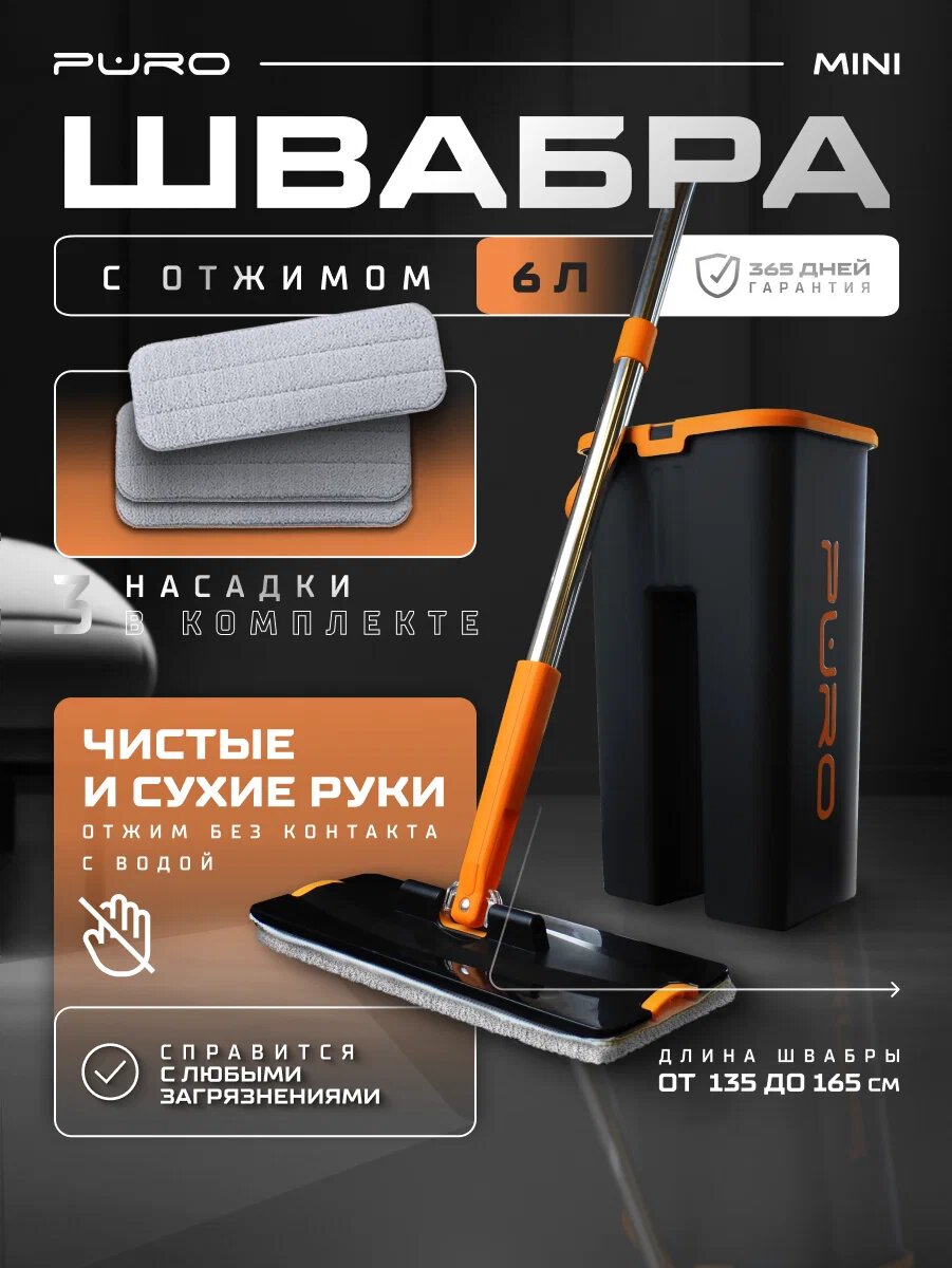 Puro Mini — компактный комплект для уборки: швабра с отжимом и ведро в элегантном чёрном цвете. Идеальное решение для тех, кто ценит скорость, аккуратность и минимум хлопот при повседневной уборке.