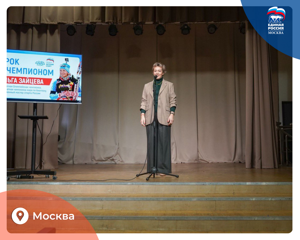 Двукратная олимпийская чемпионка по биатлону, депутат Мосгордумы и координатор проекта «Детский спорт» Ольга Зайцева встретилась с воспитанниками Московского училища олимпийского резерва №1. В формате открытого диалога она поделилась историей своего пути к высшим наградам, рассказала о преодолении трудностей и формировании чемпионского характера. Юных спортсменов интересовали не только секреты подготовки, но и то, как чемпионке удается совмещать спорт с общественно-политической деятельностью. Встреча завершилась автограф-сессией, где Ольга Зайцева каждому воспитаннику оставила персональное напутствие, ставшее для ребят дополнительным мотивационным стимулом. «Для меня такие встречи — это всегда колоссальный заряд энергии и возможность отдавать долг своему спорту. Важно не просто рассказывать детям о победах, но и честно говорить о сложностях, о работе над ошибками, о том, что чемпионский характер куется далеко не один день. Я видела в их глазах огонь и настоящую жажду достижений. Ребята