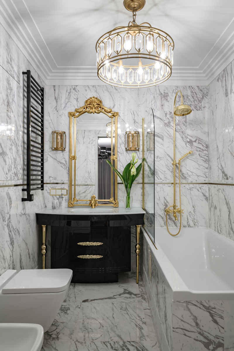 Одним из самых популярных решений, но, на мой взгляд, очень непрактичных, я бы назвала свободно стоящую ванну посреди комнаты. Это безусловно красиво, эстетично, вдохновляюще, но есть моменты, на которые нельзя не обратить внимание: -трудности с подводом коммуникаций (слив, подвод воды), особенно это касается квартир -осложняется уборка ванной комнаты. - с точки зрения функциональности пространства-полезная площадь теряется. - зачастую возникают сложности с тем, что нет места под рукой , куда было возможно положить средства для душа и ванной, полотенца Лучшее решение все-таки-ванна у стены. Фотограф-Мария Иринархова Матовые черные смесители и фурнитура Наверное, это само популярное реализуемое решение. Но в реальности оказалось абсолютно непрактичным выбором. Черные смесители требуют постоянной чистки: на них видны отпечатки и известковый налёт. Альтернативная замена черному- тёплые металлы: латунь, бронза, шампань. Они выглядят благородно, и следы воды не так заметны. Фотограф-М