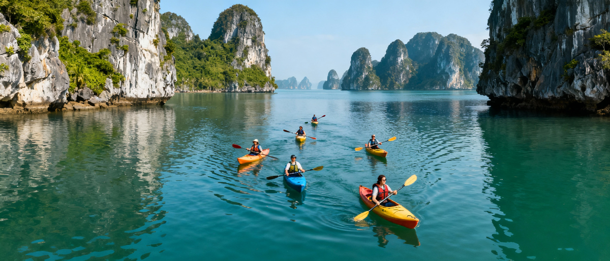 Каякинг — “must-do” для любителей приключений. Прогулки проходят по тихим лагунам, через скальные арки, в пещеры или закрытые бухты. Лучшие зоны — пещера Луон, районы Лан Ха и Бай Ту Лонг, пляжи Ба Трай Дао. Альтернатива — бамбуковые лодки под управлением местных рыбаков (подходит для семей с детьми). - Посещение островов с пляжами
