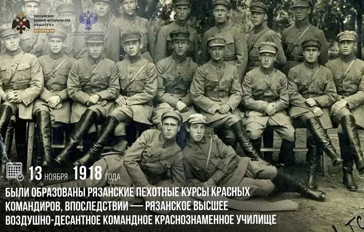 13 ноября 1918 года были образованы Рязанские пехотные курсы красных командиров, впоследствии — Рязанское высшее воздушно-десантное командное Краснознаменное училище Уже в 1920 году на базе пехотных курсов было организовано Рязанское пехотное училище, которое через 17 лет получило имя Климента Ворошилова. Во время Великой Отечественной войны учебное заведение тайно переформатировалось в военно-парашютную школу для обучения бойцов ВДВ. За время своего существования учебное заведение подготовило порядка 50 тысяч офицеров для ВДВ и других видов и родов войск. Среди выпускников — 53 Героя Советского Союза, 82 Героя Российской Федерации, а также тысячи кавалеров боевых орденов. #памятныедаты_ИсторияРФ Подписаться на История.РФ