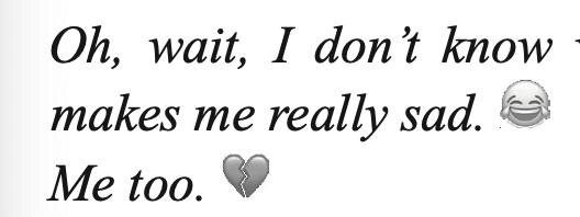 Возможно, я перестала понимать зумеров… или кто там дальше, альфа-поколение, но почему…. в книге в сэд-момент — вот ЭТОТ смайлик? Мне так грустно 😂😂😂 Ладно, еще есть теория, что автор книжки — миллениал и сам не шарит (или дед в душе) #шаисы_переводы