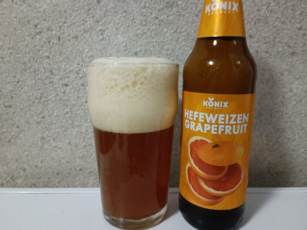 Сегодня у меня в бокале хефевайцен с добавлением грейпфрута от пивоварни Коникс. Довольно давно уже на рынке помимо базовой есть банановая пшеничка от них, и вот ещё одна. Алк. 4.5 Бутылка объёмом 0.45 литра обошлась мне в 160р, куплена в магазине Лента. Пиво медно-коричневого цвета с пышной пенной шапкой. Ароматика яркая грейпфрутовая. Во вкусе он же, аромок явно не пожалели, многовато сладости, пшеничная база немного потерялась. Напоминает грейпфрутовый хугарден, только дороже. Странный продукт. 6/10 Моё мнение не претендует на истину в какой бы то ни было инстанции, это всего лишь частная точка зрения. Поддержите автора лайком и подпиской, если было интересно. Чрезмерное употребление алкоголя может нанести вред вашему здоровью.
