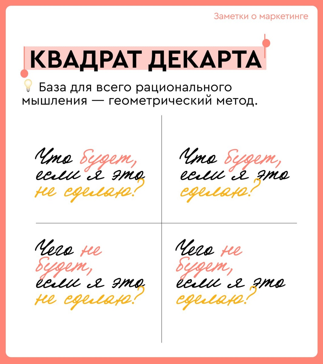 π§ ΠΠ΅ΠΎΠΌΠ΅ΡΡΠΈΡΠ΅ΡΠΊΠΈΠΉ ΠΌΠ΅ΡΠΎΠ΄ ΠΠ΅ΠΊΠ°ΡΡΠ° ΠΈ ΠΊΠ°ΠΊ ΠΎΠ½ ΠΏΠΎΠΌΠΎΠ³Π°Π΅Ρ Π½Π΅ ΡΠΎΠΉΡΠΈ Ρ ΡΠΌΠ°, ΠΊΠΎΠ³Π΄Π° Π½ΡΠΆΠ½ΠΎ ΠΏΡΠΈΠ½ΡΡΡ ΡΠ΅ΡΠ΅Π½ΠΈΠ΅ ΠΠ΅Π΄Π°Π²Π½ΠΎ Ρ ΡΠΈΡΠ°Π»Π° ΠΎΠ΄Π½Ρ ΠΊΠ½ΠΈΠ³Ρ, Π² ΠΊΠΎΡΠΎΡΠΎΠΉ ΡΡΡΠ»Π°Π»ΠΈΡΡ Π½Π° Β«Π Π°ΡΡΡΠΆΠ΄Π΅Π½ΠΈΠ΅ ΠΎ ΠΌΠ΅ΡΠΎΠ΄Π΅Β» ΠΠ΅ΠΊΠ°ΡΡΠ° β ΡΠΎΡ ΡΠ°ΠΌΡΠΉ ΡΠ΅ΠΊΡΡ, Π³Π΄Π΅ ΠΠ΅ΠΊΠ°ΡΡ ΠΏΡΠ΅Π΄Π»ΠΎΠΆΠΈΠ» Π³Π΅ΠΎΠΌΠ΅ΡΡΠΈΡΠ΅ΡΠΊΠΈΠΉ ΠΌΠ΅ΡΠΎΠ΄ ΠΌΡΡΠ»Π΅Π½ΠΈΡ. ΠΠ½ Π²Π΅Π΄Ρ Π½Π΅ ΠΏΡΠΎ ΠΌΠ°ΡΠ΅ΠΌΠ°ΡΠΈΠΊΡ. ΠΠ½ ΠΏΡΠΎ ΡΠΎ, ΠΊΠ°ΠΊ Π΄ΡΠΌΠ°ΡΡ, ΠΊΠΎΠ³Π΄Π° Π²ΡΡ ΠΏΡΡΠ°Π΅ΡΡΡ Π² Π³ΠΎΠ»ΠΎΠ²Π΅: Π΄Π΅Π΄Π»Π°ΠΉΠ½Ρ, ΠΈΠ΄Π΅ΠΈ, Π·Π°Π΄Π°ΡΠΈ, ΡΠΎΠΌΠ½Π΅Π½ΠΈΡ. π ΠΡΠ»ΠΈ ΠΊΠΎΡΠΎΡΠΊΠΎ, ΠΠ΅ΠΊΠ°ΡΡ ΠΏΡΠ΅Π΄Π»ΠΎΠΆΠΈΠ» ΠΎΡΠ½ΠΎΡΠΈΡΡΡΡ ΠΊ ΠΌΡΡΠ»ΡΠΌ ΠΊΠ°ΠΊ ΠΊ ΡΠΈΠ³ΡΡΠ°ΠΌ: Π»ΡΠ±ΡΡ ΡΠ»ΠΎΠΆΠ½ΡΡ ΡΠΎΡΠΌΡ ΠΌΠΎΠΆΠ½ΠΎ ΡΠ°Π·ΠΎΠ±ΡΠ°ΡΡ Π½Π° ΠΏΡΠΎΡΡΡΠ΅. Π Π΅ΡΠ»ΠΈ ΠΈΡ