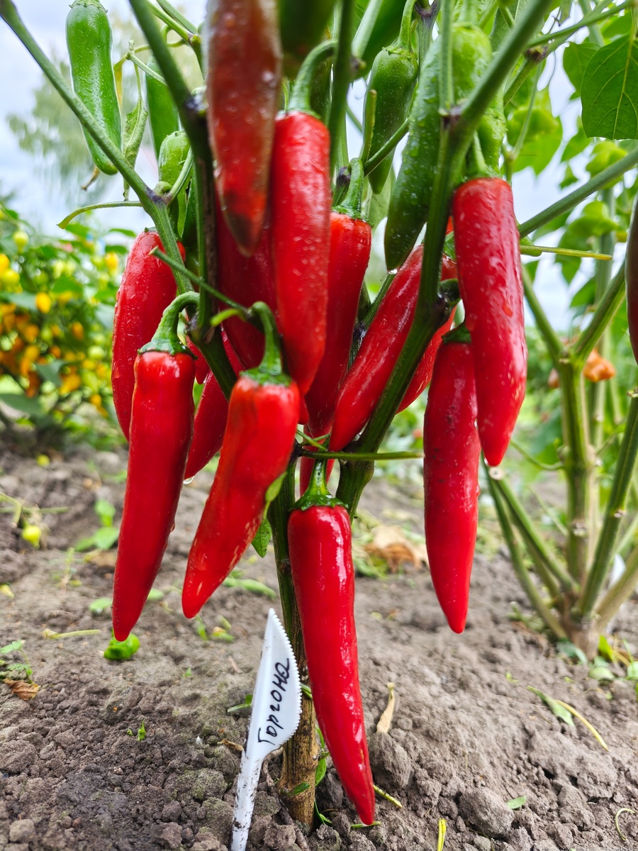 Очень интересный и продуктивный сорт острого перца. Толщина стенки до 5 мм. Острота 2000–3000 сковиллов. Острота в основном сосредоточена в плацентарной ткани и семенах. Если их удалить, то острота будет не выше 500 сковиллов. Высотой до 60 см, компактное.