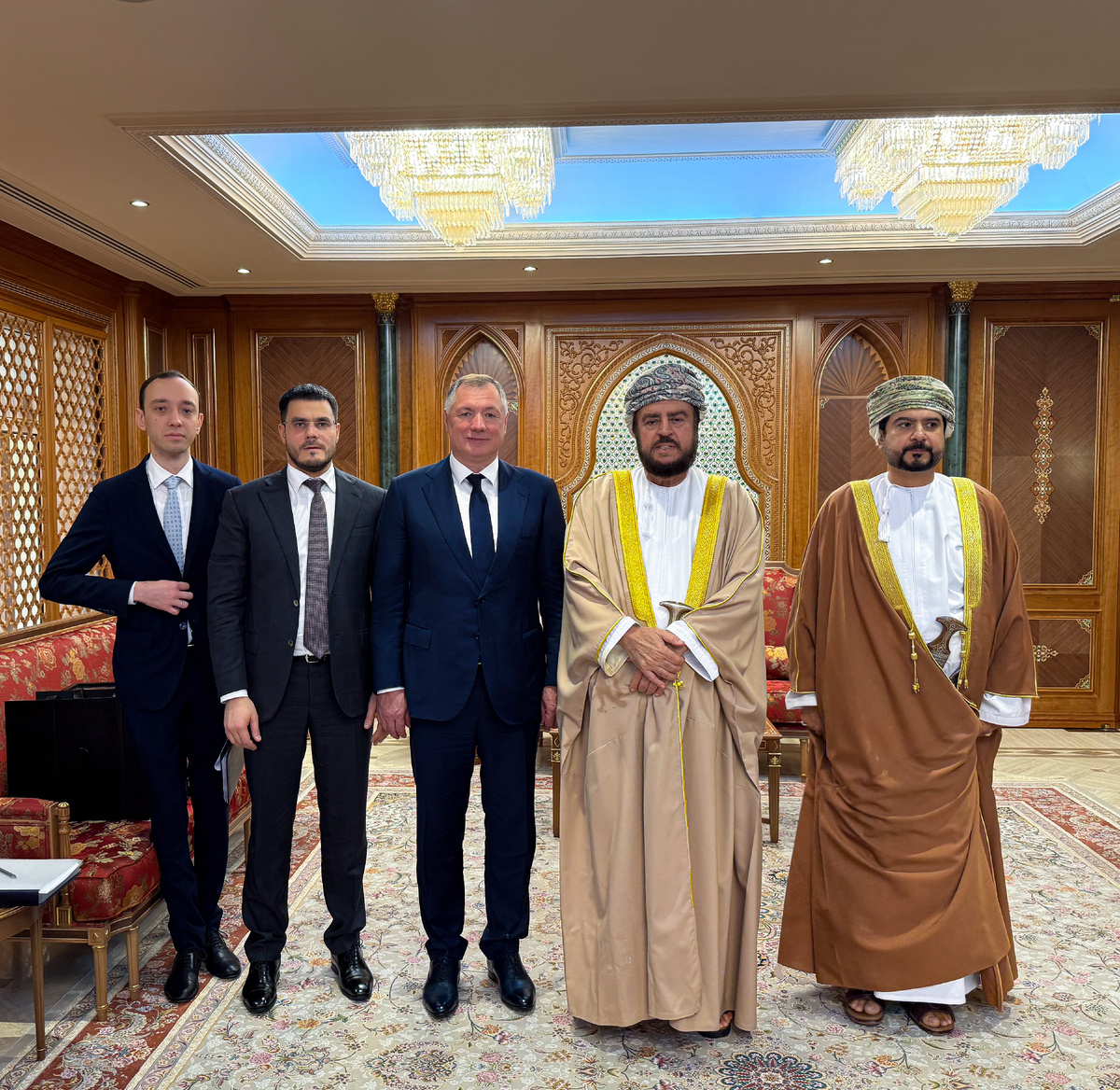 В этом году исполнилось 40 лет с момента установления дипломатических отношений между Россией и Султанатом Оман. Вице-премьер провел переговоры с заместителем премьер-министра по вопросам международного сотрудничества Асаадом бен Тариком Аль Саидом и министром торговли, промышленности и привлечения инвестиций Каисом бен Мухаммедом аль-Юсуфом. Марат Хуснуллин отметил, что российско-оманский диалог характеризуется высоким темпом и насыщенным содержанием, этому способствует доверительное и тесное общение между лидерами стран – Президентом Владимиром Путиным и Султаном Омана Хайсамом бен Тареком Аль Саидом. Есть позитивная динамика в торгово-экономических связях. По сравнению с 2021 годом товарооборот вырос почти в 2 раза. Среди перспективных направлений двустороннего сотрудничества – расширение поставок халяль-продукции, обмен опытом в сфере жилищного строительства. Кроме этого, вице-премьер РФ принял участие в пленарной сессии «Россия – Оман: взгляд в будущее» бизнес-форума «Рос