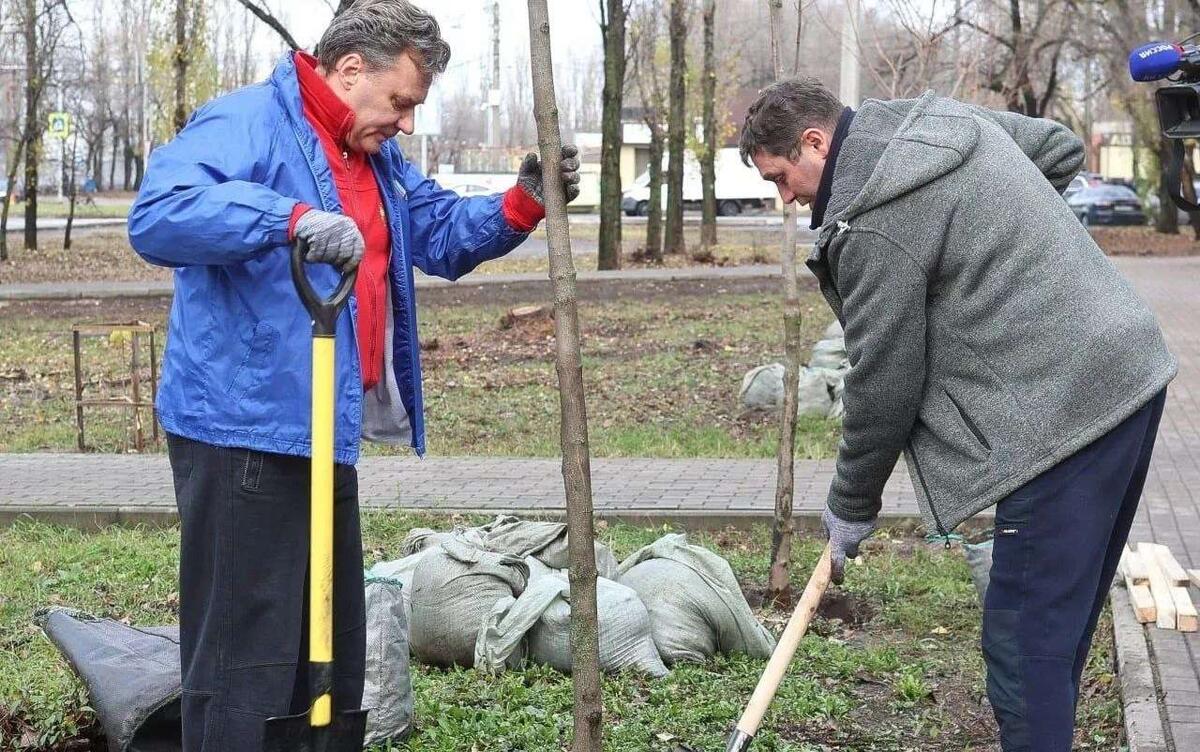 Мэр Сергей Петрин принял участие в высадке деревьев в микрорайоне ВАИ в Воронеже