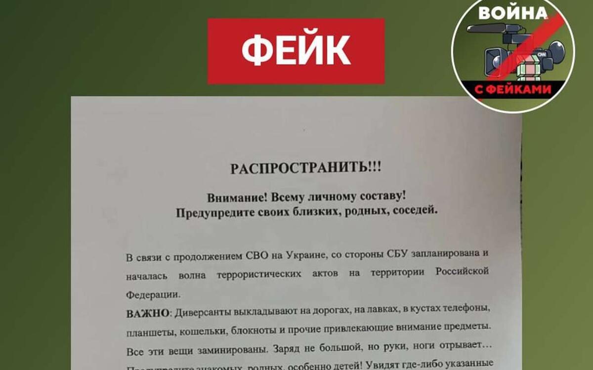 В Воронежской области распространили фейк о том, что украинские спецслужбы готовят массовые теракты в России. Об этом в четверг, 13 ноября, сообщили в Telegram-канале «Война с фейками. Воронежская область». В СМИ неизвестные рассылают объявление, в котором сказано, что со стороны СБУ началась волна террористических актов на территории России. Диверсанты якобы выкладывают на дорогах, лавочках и в кустах телефоны, планшеты, кошельки, блокноты и прочие предметы, которые привлекают внимание. — Все эти вещи заминированы. Заряд не большой, но руки, ноги отрывает, — говорится в документе. Также неизвестные просят предупредить родных и детей, чтобы последние не трогали указанные вещи. В качестве аргумента неизвестный сообщил, что вчера в Воронеже неизвестный поднял с пола паспорт и у него оторвало руку. На самом деле угрозы массовых терактов в Воронеже нет. Фальшивое объявление распространяется в мессенджерах практически с начала специальной военной операции, а текст остается неизменным. Одной