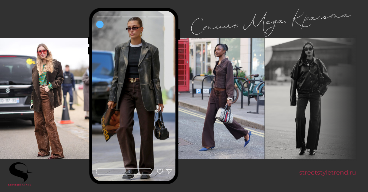 Джинсы шоколадного цвета — один из самых востребованных атрибутов сезона осень-зима 2025/2026 — идеи для вдохновения