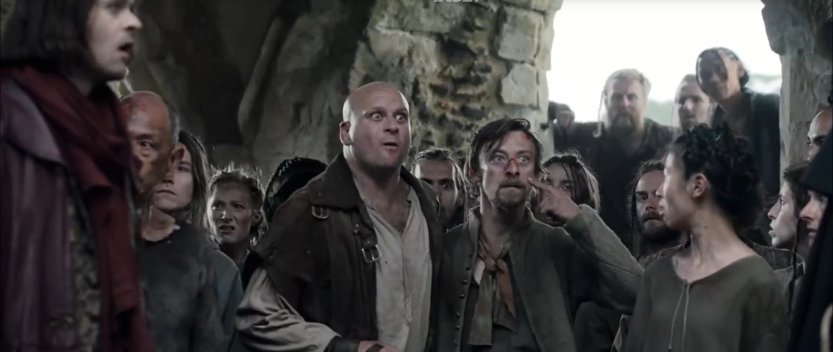 3-я серия. Геральт со своей ганзой прибыл в лагерь беженцев. Там женщины, которые ехали с ними в повозке нашли родных, в частности девочка нашла родную старшую сестру, которую для удобства здесь решили сделать подозреваемой ведьмой. Тоже перепев оригинала и тоже на редкость кривой – ну, ладно девушку обвиняют (кстати, среди главных обвинителей те два бомжа с кладбища из начала прошлой серии), а ее младшую сестру-то за что? Тоже ведьма, сжечь ее до кучи! Бесноватый жрец собирается казнить их за колдовство и измену. Кому измену? Геральт, как и полается заговорил о суде поединком.