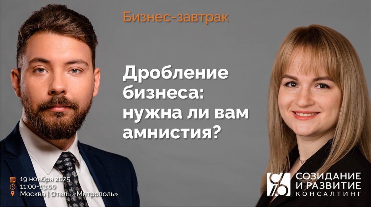Второй бизнес завтрак из серии мероприятий по дроблению бизнеса пройдет с фокусом на налоговую амнистию и резонность её применения. Мы приглашаем собственников и генеральных директоров российского бизнеса. Если то явка обязательна 😉 На бизнес-завтраке Вы: 🗸 Оцените, стоит ли признаваться налоговой в дроблении 🗸 Поймете сколько стоит такое признание (в размере доплаченных налогов) 🗸 Узнаете, как налоговая будет проверять и оценивать соблюдение организацией требований к амнистии 🗸 Выведаете, что грозит компании за нарушение требований по амнистии Тема актуальна в связи с: · введением в действие амнистии по дроблению бизнеса Федеральным законом от 12.07.2024 № 176-ФЗ · грядущими изменениями в законодательстве и снижением порога по УСН до 10 млн руб. · ростом средней суммы доначислений для московских компаний в 2024г. до 101 млн. руб. Бизнес-завтрак закрытый, запись вестись не будет. Мы приглашаем только собственников и высшее руководство российского бизнеса. Участие бесплатно. Регист