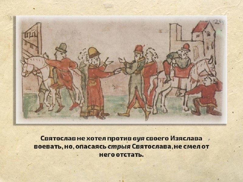 В системе родственных связей Древней Руси вуй – это брат отца, а стрый – брат матери. Князь Святослав Всеволодович мечется между дядьями, как меж двух огней. Если же определить вуй как широкий круг родственников и предков, а стрый - как близкий круг родных, то генеалог, как символический Святослав, балансирует между ними в коллективном поле рода.