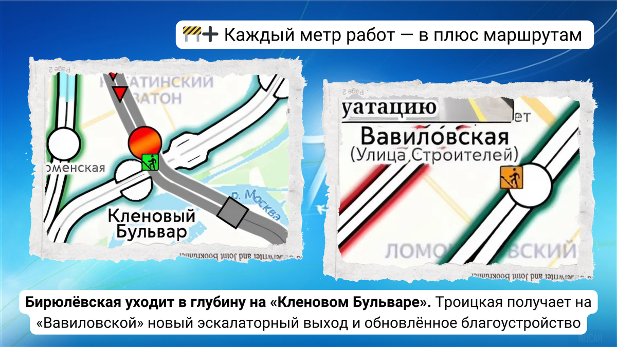 официальные отчеты. Давайте вместе разберемся, что же на самом деле происходит с нашей Москвой. Поехали? Продолжается раскрытие котлована 🚇 станции «Кленовый Бульвар» 🏭 Бирюлëвской линии. Ведутся работы по разработке траншеи стене в грунте котлована, в котором будет строиться вентиляционная камера (📷 1.3). Во-вторых, покажем послепусковые работы на 🚇 станции «Вавиловская» 🏡Троицкой линии. 📷 2.1: Строительство «эскалаторного» выхода из южного вестибюля к дому 74 по Ленинск