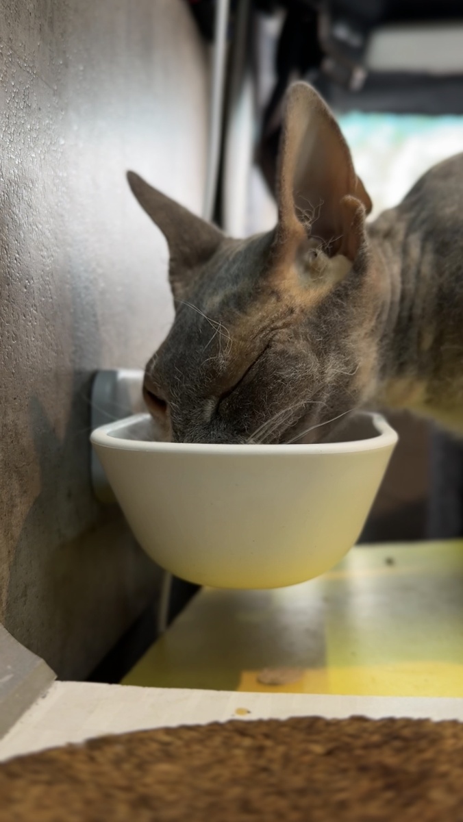 Когда мы впервые взяли Плюшу в путешествие на автодоме, я не ожидал главного сюрприза — эта кошка ест столько, что впору открывать отдельный счёт на корм. И это не каприз. Это чистая физиология породы. Сфинксы и их метаболизм: почему они требуют больше еды Сфинксы — порода кошек с минимальной шерстью или полностью без неё. Организм теряет больше тепла, чем у обычных кошек, а чтобы удерживать температуру тела 38–39°C, метаболизм работает на повышенных оборотах. Что это означает в жизни? Сфинксы тратят в 2–3 раза больше энергии на согрев. А значит, им нужно больше калорий. Иногда — в полтора-два раза больше, чем кошкам того же веса. Плюша весит около 3,5 кг, но ест честно на 6–7 кг. Кто такая сфинкс-велюр Плюша — сфинкс-велюр. Это кошка, родившаяся от двух лысых сфинксов, но с лёгким мягким пушком — на ощупь как бархат или персик. Велюры встречаются реже полностью лысых кошек, но метаболизм у них абсолютно такой же: быстрый, прожорливый и завязанный на температуре окружа