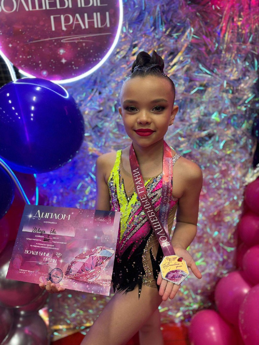 Наши талантливые дети ✨ 2 ноября ученица 4 «К» класса Ева блестяще выступила на открытом турнире по художественной гимнастике «Волшебные грани» и завоевала 1 место! 🥇 Ева представила две программы: без предмета и с мячом, продемонстрировав грацию, технику и настоящую волю к победе. 👏 От всей души поздравляем Еву с этим выдающимся результатом! Желаем не останавливаться на достигнутом, покорять новые высоты и всегда верить в себя! Ждем новых побед! #ДОНМ | #ТалантливыеДетиМосквы | #Школа1293| #3АO| #ШколаКунцево | #РайонКунцево