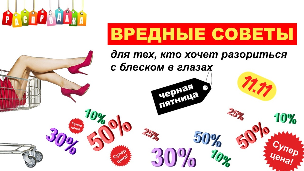 Вредные советы для тех, кто хочет разориться с блеском в глазах Ноябрь – то самое волшебное время, когда магазины традиционно объявляют распродажи, а наш внутренний голос начинает нашептывать: «Купи это сейчас, а то потом такого шанса не будет!». Чтобы вы не пропустили ни одной акции и сделали все покупки с максимальным ущербом для кошелька и нервов, мы подготовили для вас этот исчерпывающий гид. P.S. Ну а если ты, вдруг, неисправимая зануда и хочешь всё сделать «правильно», то какой в этом кайф? Но на всякий случай скажем: ходи со списком, в удобной обуви, после обеда и желательно с подругой, которая скажет тебе правду. Но это же так скучно!