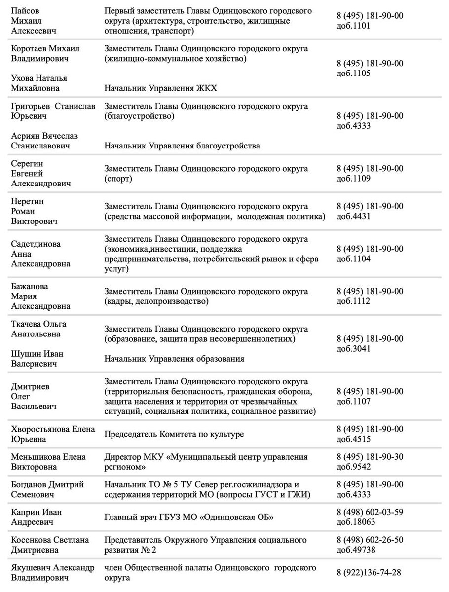 Выездная администрация пройдёт 18 ноября с 10:00 до 12:00 в территориальном управлении Жаворонковское по адресу: д. Ликино, ул. Новая, д. 9 (Ликинская СОШ). Участие в мероприятии примут заместители главы, представители МКУ «МЦУР», Одинцовской областной больницы, министерства чистоты Московской области. Запись на личный приём ведётся в рабочие дни с 09.00 до 18.00 (понедельник-четверг), с 09.00 до 15.30 (пятница), обеденный перерыв: 13.00-13.45. В случае невозможности дозвониться по указанным телефонам - звонить по тел. 8-495-181-90-10, доб. 7612 или оставить заявку на обратный звонок по ссылке. ☑️@Администрация Одинцовского округа