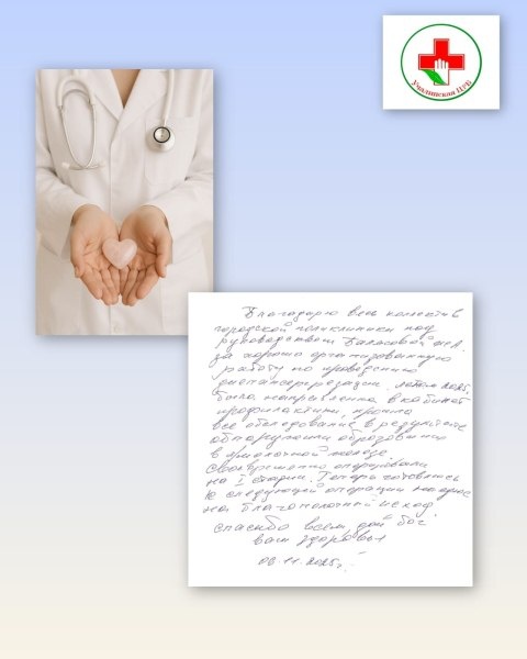 Ваш отзыв — лучшая награда для всей нашей больницы. Мы стараемся создавать атмосферу заботы и профессионализма для каждого пациента. Желаем вам крепкого здоровья и благополучия.