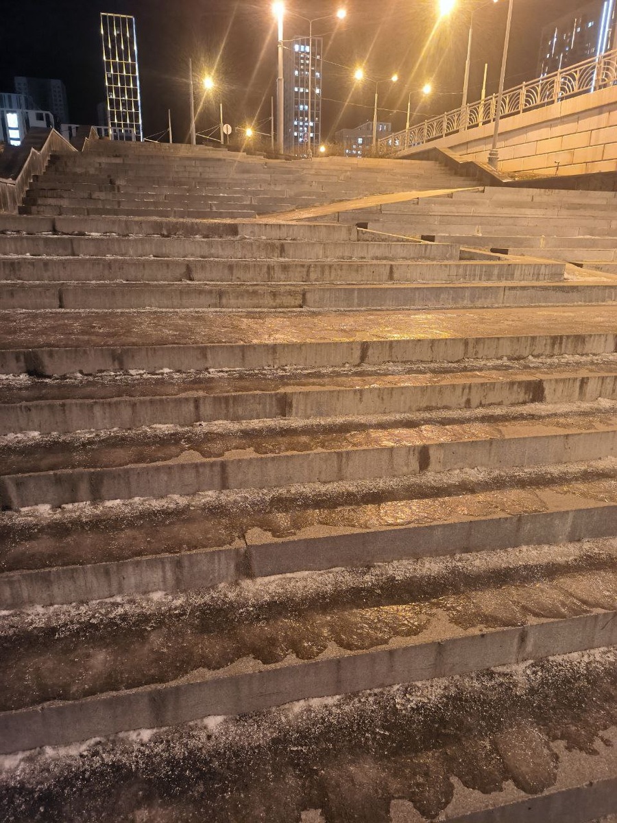 Жители Академического района жалуются на гололед Гололед стал настоящей проблемой для некоторых жителей Екатеринбурга. Читательница «Моментов» прислала фото скользких ступеней и написала такое сообщение: Зимние забавы и аттракционы для жителей Академического района: бесплатный каток в Преображенском парке! Коньки не нужны. Акция каждый день: навернись с лестницы и посети травматологию в новой поликлинике бесплатно! В Администрации Екатеринбурга нам сообщили, что районы должны следить за местами скопления воды и вовремя их чистить. Также рекомендовано использовать противогололедные материалы и фракционированный песок, не экономя на них. Приходилось ли вам скользить по тротуарам этой осенью? Подписаться 🔸 Обсудить