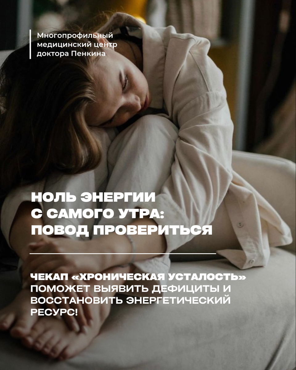 ✅ Просыпаетесь с усталостью: спите, но не восстанавливаетесь Если хотя бы один из пунктов про вас, рекомендуется сделать обследование. Чекап «хроническая усталость» поможет выявить причины усталости, скорректировать привычки и повысить уровень энергии.