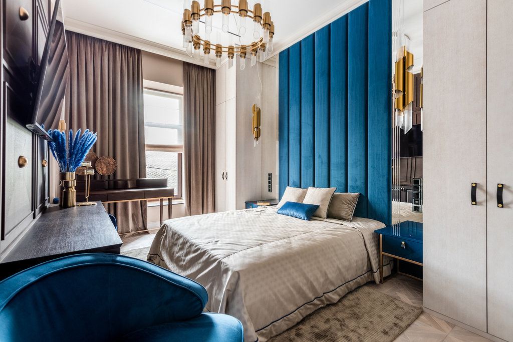 Сочетание синего с золотом, медью или хромом — настоящий тренд современности. Как это работает: