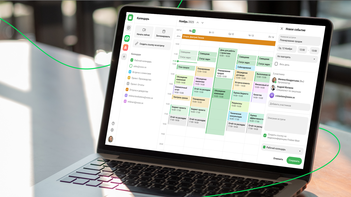 В популярной российской платформе для корпоративных коммуникаций появилась возможность интеграции рабочих календарей иностранных сервисов или создания собственных. Это поможет отечественным компаниям быстрее реализовать стратегии импортозамещения ПО, что для некоторых отраслей стало необходимостью и строгим требованием регуляторов. В мессенджере Frisbee создали собственный встроенный корпоративный календарь, который работает полностью внутри платформы - без Google, Outlook и других внешних решений. Все встречи, напоминания и приглашения остаются внутри компании, а если нужно - синхронизируются с календарями от Google, Microsoft или Яндекс. Полная автономность - без потери удобства Календарь Frisbee можно использовать автономно, внутри корпоративного контура. Все встречи, уведомления и данные сотрудников остаются под контролем компании - надежно, безопасно и без передачи информации третьим сторонам. Подключение происходит автоматически через корпоративные учетные записи: никаких паролей