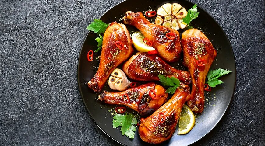 Острые куриные ножки в паназиатском стиле — достойная альтернатива крылышкам «баффало» и другим известным закускам. В качестве дополнения здесь отлично работают любые кисло-сладкие соусы, а также довольно нейтральные на вкус сметанные и йогуртовые с зеленью. 45 минут Дополнительное время: 6–8 часов Для приготовления 3 порций нужно: Для подачи: 1. Смешайте в глубокой миске соевый соус, измельченный имбирь, мелко нарубленный чеснок, кунжутное масло, жидкий мед и 2 ст. л. рафинированного растительного масла. Тщательно перемешайте. 2. Слегка посолите и поперчите маринад, добавьте острую пасту кочудян по вкусу. Если хотите получить очень острые голени, положите 1 ст. л. без горки. Еще раз перемешайте. 3. Добавьте в маринад ножки, перемешайте, затяните миску пищевой пленкой и поставьте в холодильник на 6–8 часов. 4. Достаньте миску с куриными ножками из холодильника минимум за 30 минут до начала приготовления. Обсушите от маринада и обжарьте на хорошо разогретой сковороде, на среднем огне