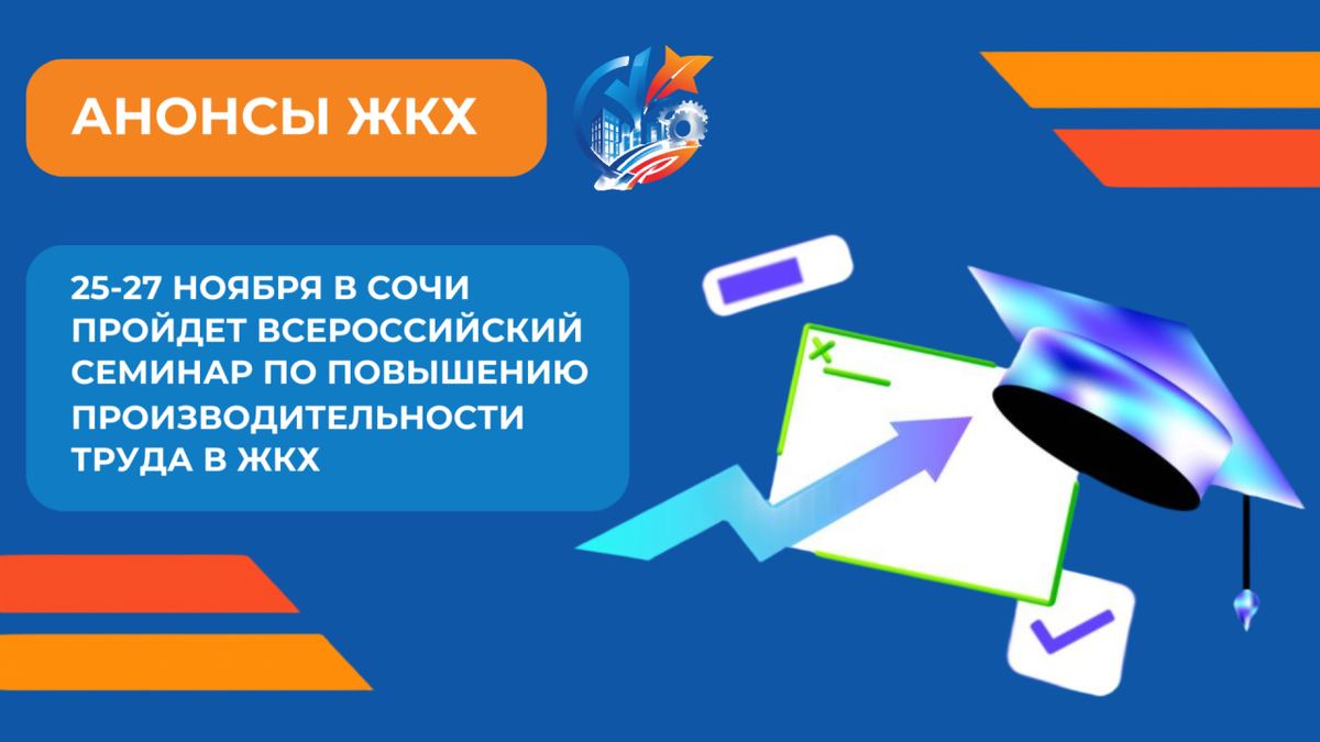 ⚡️ ПЕРЕЗАГРУЗКА ЖКХ НАЧИНАЕТСЯ В СОЧИ 🗓 В конце ноября Сочи станет площадкой для одного из главных событий года в сфере жилищно-коммунального хозяйства — Всероссийского практического семинара «Перезагрузка ЖКХ: производительность труда как главный фактор развития» ✔️ Мероприятие пройдёт с 25 по 27 ноября 2025 года и объединит участников со всей страны — руководителей предприятий, представителей органов власти, региональных центров компетенций и экспертов отрасли ✔️ Организатором семинара выступает Отраслевой центр компетенций производительности труда в жилищно-коммунальном хозяйстве Минстроя России НИИСФ РААСН. Соорганизаторы — Минстрой России, Университет Минстроя НИИСФ РААСН, Министерство экономики Краснодарского края, Департамент строительства Краснодарского края и АНО «Региональный центр компетенций» 🗂 Программа семинара включает обучающие блоки, стратегические сессии, демонстрацию лучших региональных практик и деловые игры. Участники смогут погрузиться в реальные примеры вне