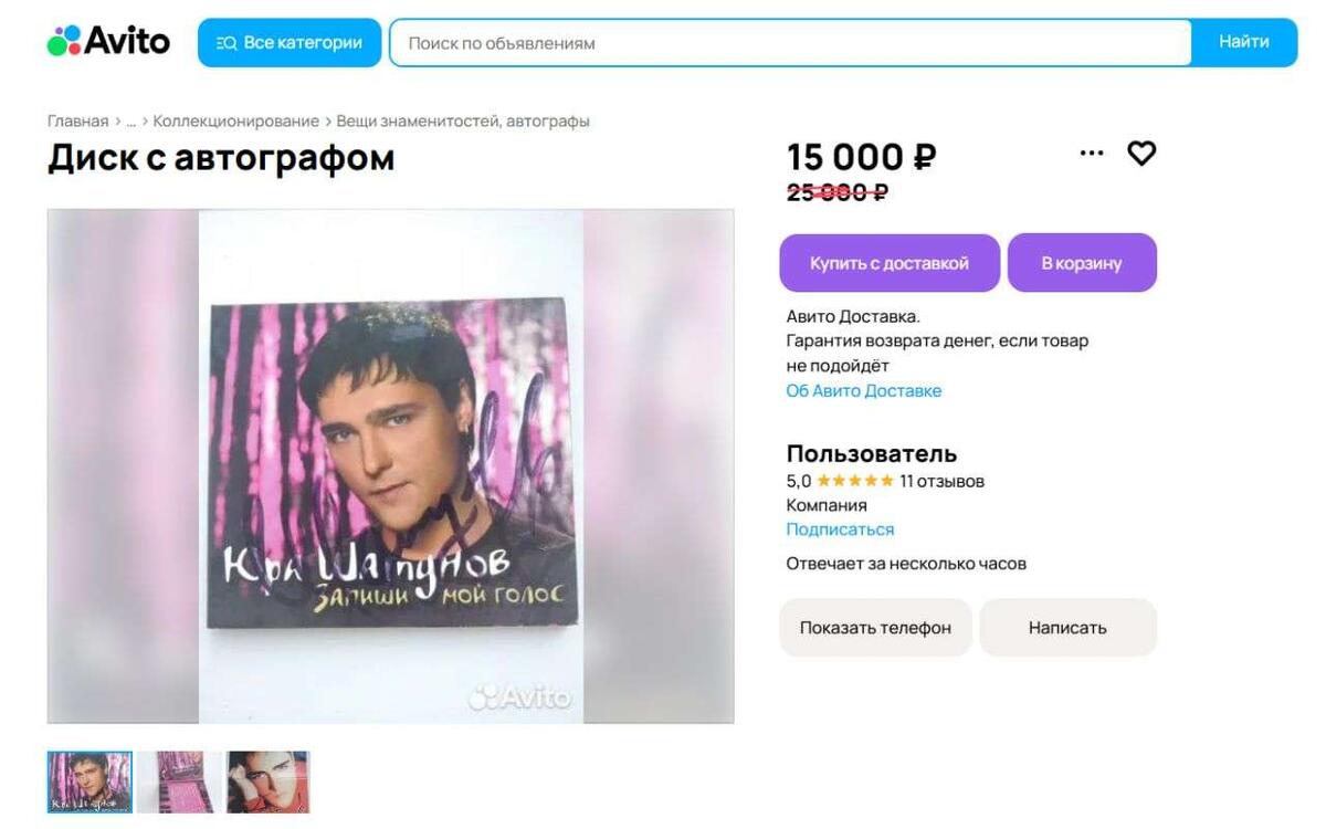 Владелец диска с автографом известного музыканта и исполнителя Юрия Шатунова пошел на 40-процентное снижение цены. Стоимость выставленного на продажу в Воронеже лота обновили на сайте объявлений «Авито» в среду, 12 ноября. Напомним, изначально за раритет просили 25 тысяч рублей, но теперь его можно приобрести за 15 тысяч рублей. В комплект входит CD-диск и плакат с автографами звезды отечественной эстрады, дававшего концерт в Воронежском цирке в 2006 году. Бывший солист популярного в конце 80-х и начале 90-х годов прошлого века коллектива «Ласковый май», как известно, ушел из жизни летом 2022 года в Подмосковье. Причиной неожиданной смерти 48-летнего музыканта стал обширный инфаркт. В Воронеже ранее выставляли на продажу два диска группы «Ласковый май», на обложке которых оставил свой автограф Юрий Шатунов. В августе 2022 года – вскоре после смерти исполнителя хитов «Белые розы», «Седая ночь» и «Розовый вечер» – за лот просили 700 тысяч рублей, однако спустя три года стоимость снизили