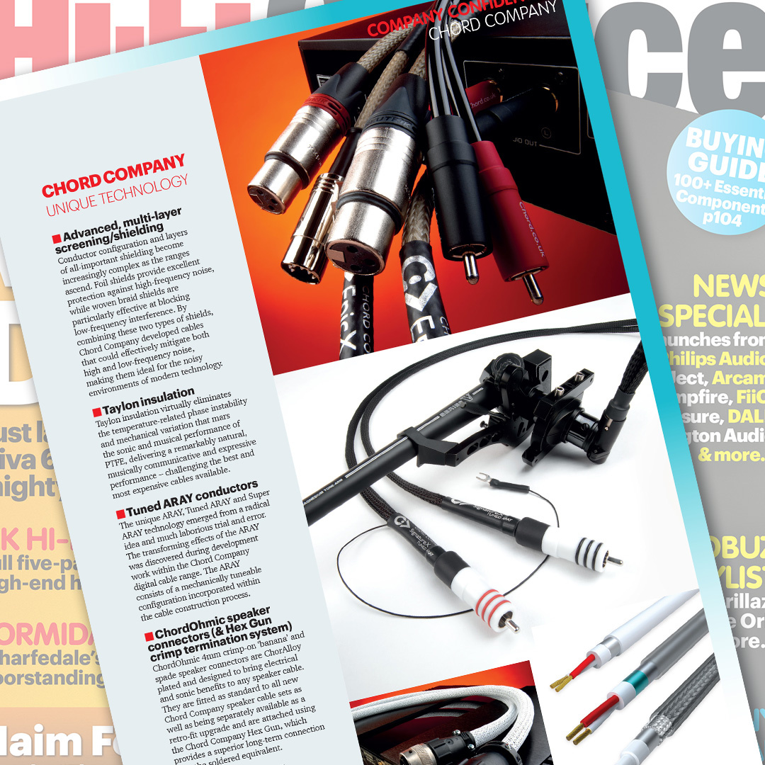Hi-Fi Choice посвятил целых три страницы в новом журнале нашему партнеру, производителю выдающихся кабелей Chord Company. Первый материал об истории создания компании вы можете прочитать здесь: Сегодня мы поделимся второй частью, а именно кратким описанием выдающихся актуальных технологий Chord Company. Конфигурация проводников и экранирующих слоёв усложняется по мере роста класса кабелей. Фольгированные экраны обеспечивают отличную защиту от высокочастотных помех, а плетёные экраны эффективны против низкочастотных наводок. Комбинируя оба типа, Chord Company создала кабели, эффективно устраняющие шум по всему диапазону, идеальные для насыщенных электропомехами условий современного мира. Изоляция Taylon практически исключает фазовые нестабильности и механические искажения, вызванные температурой, характерные для PTFE. Результат: естественное, музыкально выразительное и эмоциональное звучание, сопоставимое с самыми дорогими кабелями на рынке. Технология, состоящая из трёх уровней (ARAY,