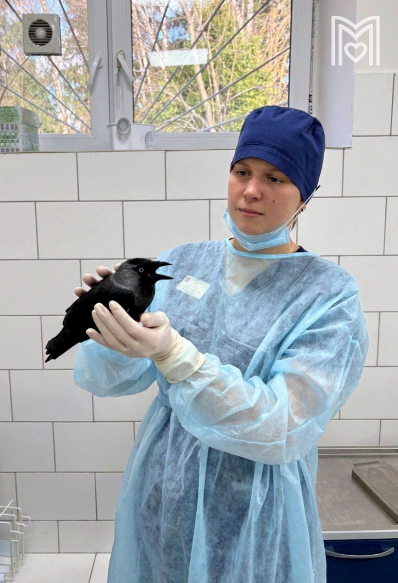 В зеленоградской государственной ветклинике на «Восточке» помогли галчонку со сломанным крылом