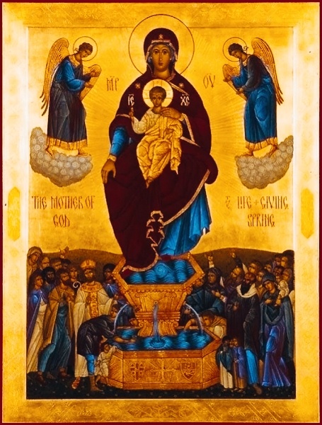 Праздник Иконы Божией Матери «Живоносный Источник» совершается в пятницу Светлой седмицы, после Пасхи. Это единственный день, когда Церковь сочетает пасхальное ликование с чином освящения воды.