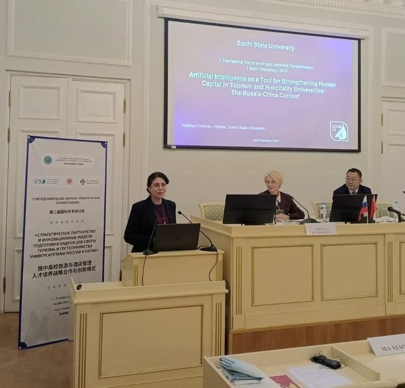 Даже когда за окном серая погода, Университет уверенно движется вперёд в научном, международном и образовательном сотрудничестве! Сегодня ректор СочиГУ Наталья Фролова принимает участие во II Международной научно-практической конференции Российско-Китайской Ассоциации университетов туризма и гостеприимства. Тема встречи — стратегическое партнёрство и инновационные модели подготовки кадров для сферы туризма и гостеприимства университетами России и Китая. Это важная площадка, где обсуждают перспективы совместных программ, современные образовательные модели и направления, определяющие будущее мировой индустрии гостеприимства.