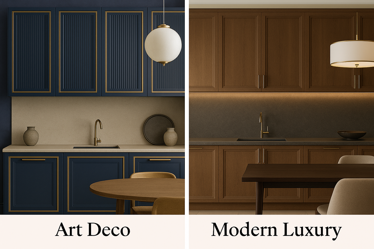 Арт-деко - стиль, который умеет быть ярким, не теряя вкуса. Он родился в двадцатых, когда мир после бурь и перемен снова захотел красоты. Люди устали от серости, им хотелось праздника, уверенности, света и блеска. Сегодня арт-деко не про роскошь ради роскоши. Это про силу формы, точность линии и свет, который живёт на поверхности. В нём есть движение, но нет хаоса. Всё в ритме, всё со смыслом. Пропорции и ритм В интерьере арт-деко чувствуется дыхание музыки: мягкие изгибы мебели, зигзаги металла, чёткие вертикали и симметрия создают ощущение движения. Линии смелые, но выверенные. Формы строгие, но не холодные. Арки, ступенчатые панели, повторяющиеся геометрические мотивы - всё подчинено ритму, как в хорошо отрепетированной партитуре. Материалы и свет Арт-деко любит контрасты, но делает их мягко. Холодный блеск металла сочетается с теплом дерева, глянец с бархатной поверхностью, а камень отражает свет, не ослепляя. В этом стиле важно не только, что выбрано, но и как это работает вместе