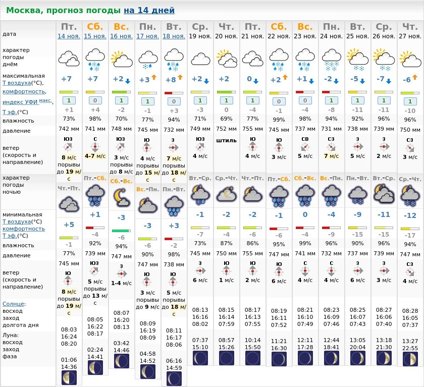 Прогноз погоды на 14 дней