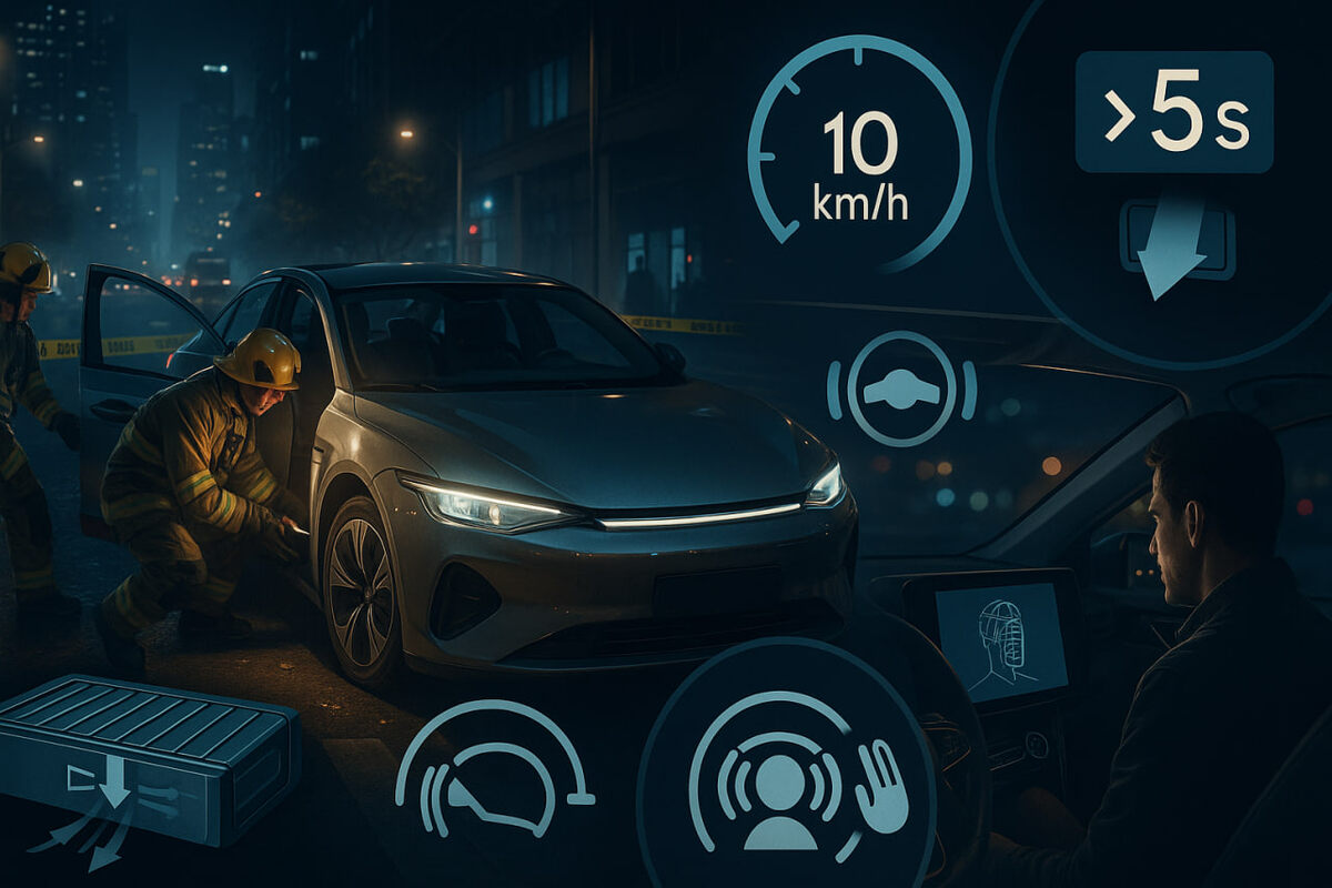 Контекст, почему нормы ускоряют. В Чэнду Xiaomi SU7 Ultra после ДТП загорелся; водитель мог бы остаться в живых, но люди которые пытались ему помочь выбраться не смогли открыть двери или разбить стёкла — тема механического управления ручками дверей стала предметом широкой дискуссии. В Шанхае у Li Auto Li Mega загорелся автомобиль на ходу, но пассажиры выбрались — помогла автоматическая разблокировка дверей; позже производитель объявил отзыв 11 411 авто и обновил алгоритмы раннего предупреждения. Эти два случая наглядно подсветили ценность простых «механических» путей эвакуации в сочетании с умными системами защиты.