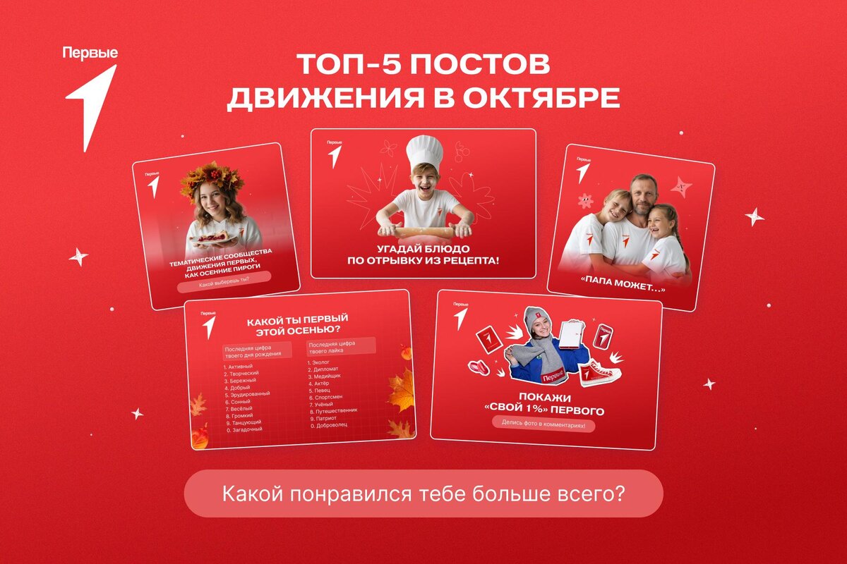 Мы собрали 5 классных постов Движения Первых октября! ⭐️ Какой ты Первый этой осенью ⭐️ Угадай блюдо по рецепту ⭐️ Покажи 1% Первого ⭐️ Вкусы тематических сообществ ⭐️ Папа может Какой из них тебе понравился больше всего? Голосуй в нашем опросе 👇