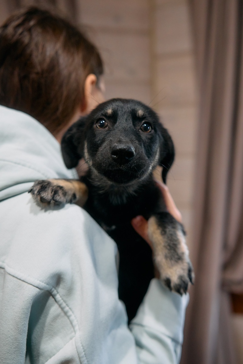 Кейт — это маленький вихрь радости и нежности. Она бежит навстречу жизни с распахнутым сердцем, любит внимание, ласку и долгие игры. Если вы ищете собаку, которая будет с вами и в походе, и на диване, и в радости, и в тишине — это она. Кейт любопытная, быстрая, будто настоящий ребёнок. Её глаза светятся интересом, а хвост не перестаёт вилять, стоит только позвать по имени. Она очень привязчивая и умеет любить без остатка. Но за этой солнечностью стоит трудная история. Кейт, её брат Гай и мама жили в военной части, пока туда не пришёл человек, начавший убивать собак. Их успели спрятать и передали нам. С тех пор мы бережём их, как своих. Теперь Кейт мечтает о доме, где её будут обнимать и звать по имени не волонтёры, а своя семья.
