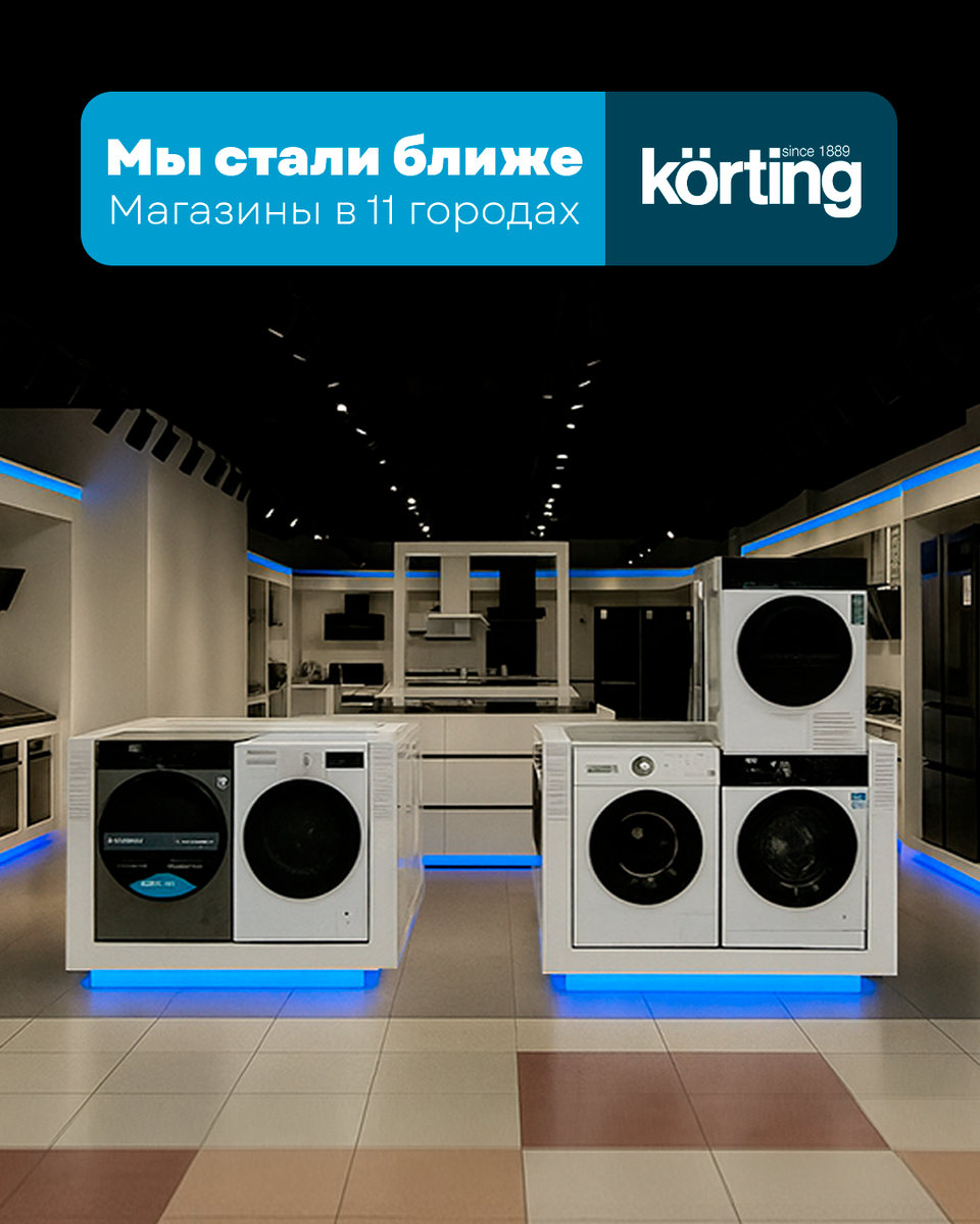 Мы рады поделиться отличной новостью — Korting становится ближе к вам! Мы открыли 18 новых фирменных магазинов в 11 городах России. Теперь выбрать крупную и малую бытовую технику Korting стало ещё удобнее — вы сможете подобрать модели по дизайну, цвету и функционалу, которые идеально подойдут вашему дому. А ещё в новых магазинах действуют выгодные акции и специальные предложения на популярные модели — самое время обновить технику!