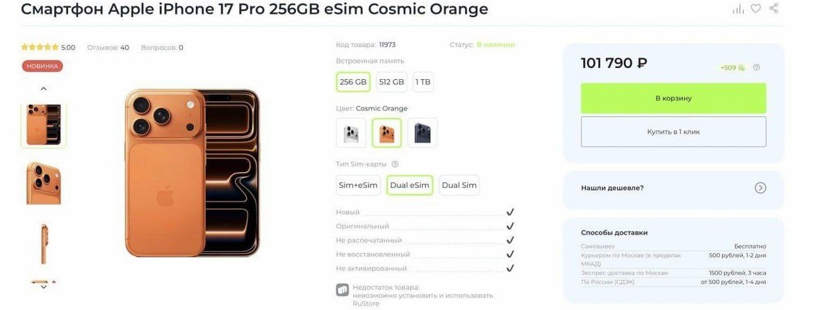 Цены на iPhone 17 Pro в России упали на 39% и теперь составляют 100 тысяч рублей всего через 2 месяца после выхода