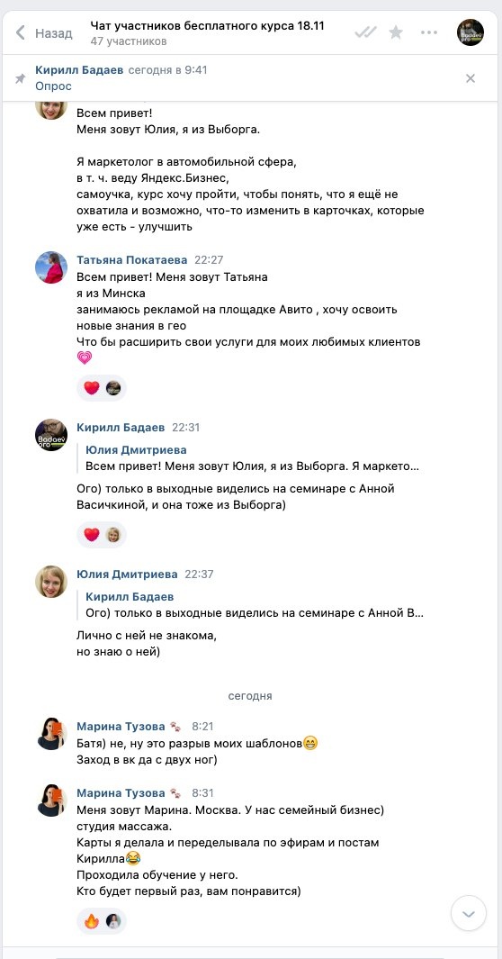😄 открывается для меня по новому, что ли 😂 Мало того что теперь можно делать каналы, чаты и в них кружочки загружать так еще голосования делать. Напомню, что после подписки на курс "Заработок на Яндекс Картах" который как раз пройдет в VK вы попадаете в наш уютный чатик участников курса, где можно делиться информацией о себе и не только. Вот не спрашивайте почему VK, ну не надо всего этого))