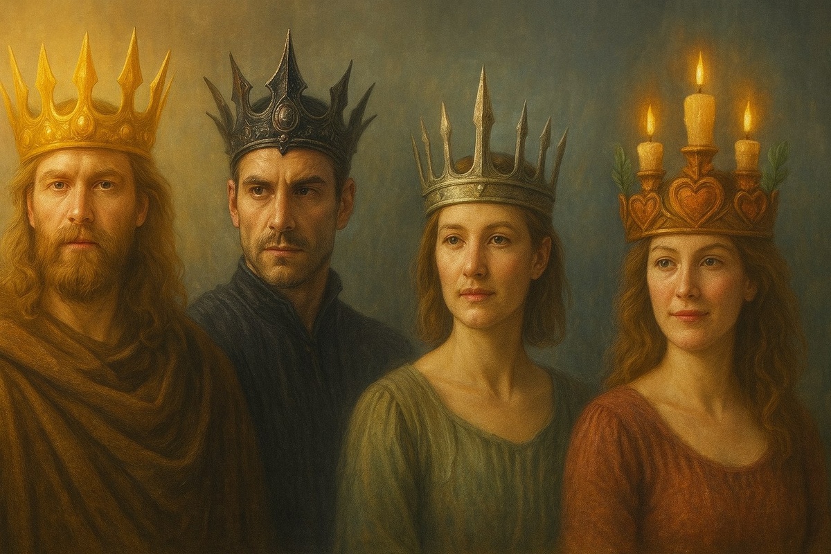 В каждом человеке живёт нечто невидимое — словно отблеск света над головой. Не украшение, а знак внутреннего достоинства. Каждый несёт свою корону: кто-то — как искру, кто-то — как тишину, кто-то — как музыку, что звучит без слов. И всё, что нужно, — лишь услышать, какая именно звучит в тебе. Этот маленький выбор займёт всего несколько мгновений, но способен напомнить, в чём твоя сила. Перед тем как смотреть на короны, остановись. Сделай вдох. Позволь себе немного замедлиться — и почувствуй, какая энергия сейчас ближе твоему сердцу. Пусть взгляд сам выберет. Та, что отзовётся первой, — и будет твоей. . . . Она словно рассвет: мягкая, но уверенная. Её сила — в ясности и способности видеть направление, даже когда путь скрыт туманом. Те, кто выбирают эту корону, несут внутреннее спокойствие и уверенность, которая не требует доказательств. Их дар — быть опорой для других, просто оставаясь собой. Корона тех, кто чувствует глубже. Она хранит силу интуиции, притяжения и тайн, которые нельзя о