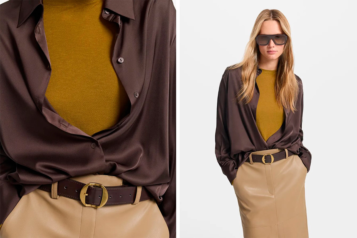 Я собрала вещи, в которых можно идти в офис, на деловую встречу или просто в новый день - стильно, спокойно и с настроением. Легкая, струящаяся, с мягким блеском - атласная блузка будто создана для утреннего света. Она драпируется красиво, не теряет форму и мгновенно придает образу ухоженность. Перламутрово-бежевый оттенок делает кожу свежее, а прямой крой и спущенная линия плеч создают расслабленный, но собранный силуэт.