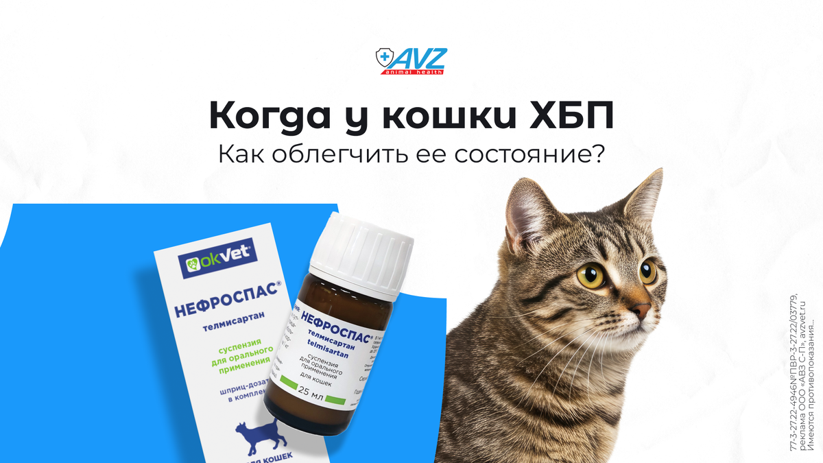 Erid: 2VtzqvFzkDn Реклама ООО "АВЗ С-П" ИНН: 5042113943 Хроническая болезнь почек (ХБП) у кошек, к сожалению, неизлечима. Но если с болезнью ничего не делать, качество жизни животного будет постепенно снижаться: может ухудшится аппетит, нарастать слабость, станет сложнее двигаться. Как же помочь питомцу чувствовать себя комфортно? Часто для хронической терапии ХБП ветеринарные врачи назначают Okvet НЕФРОСПАС – препарат, который удобен в использовании и может применяться для лечения ХБП у кошек всю жизнь. Обзор препарата мы делали здесь, а в этой статье ответим на частые вопросы о его использовании. Okvet НЕФРОСПАС – это суспензия. Ее удобно давать с помощью шприца-дозатора или с кормом. Суточная доза – 0,1 мл на 1 кг массы животного. После каждого применения промывайте шприц водой и давайте просохнуть. Не используйте шприц для других целей. Дайте кошке препарат в обычной дозе как можно скорее. Не компенсируйте пропущенный прием препарата двойной дозировкой. Этот препарат может исп